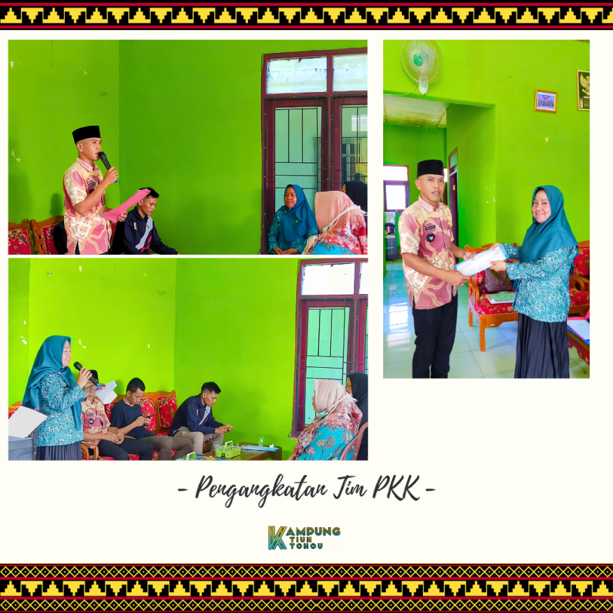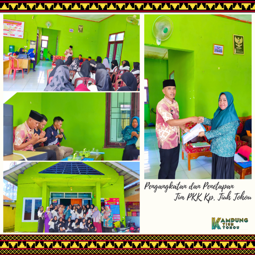 Bertempat di Balai Kampung Tiuh Tohou, Kepala Kampung Tiuh Tohou beserta Aparatur Kampung Tiuh Tohou menghadiri acara Pengangkatan Penetapan Pengurus Tim Penggerak Pemberdayaan dan Kesejahteraan Keluarga Kampung Tiuh Tohou, Kecamatan Menggala Kab. Tulang Bawang pada hari Jum,at, 26 Januari 2024.