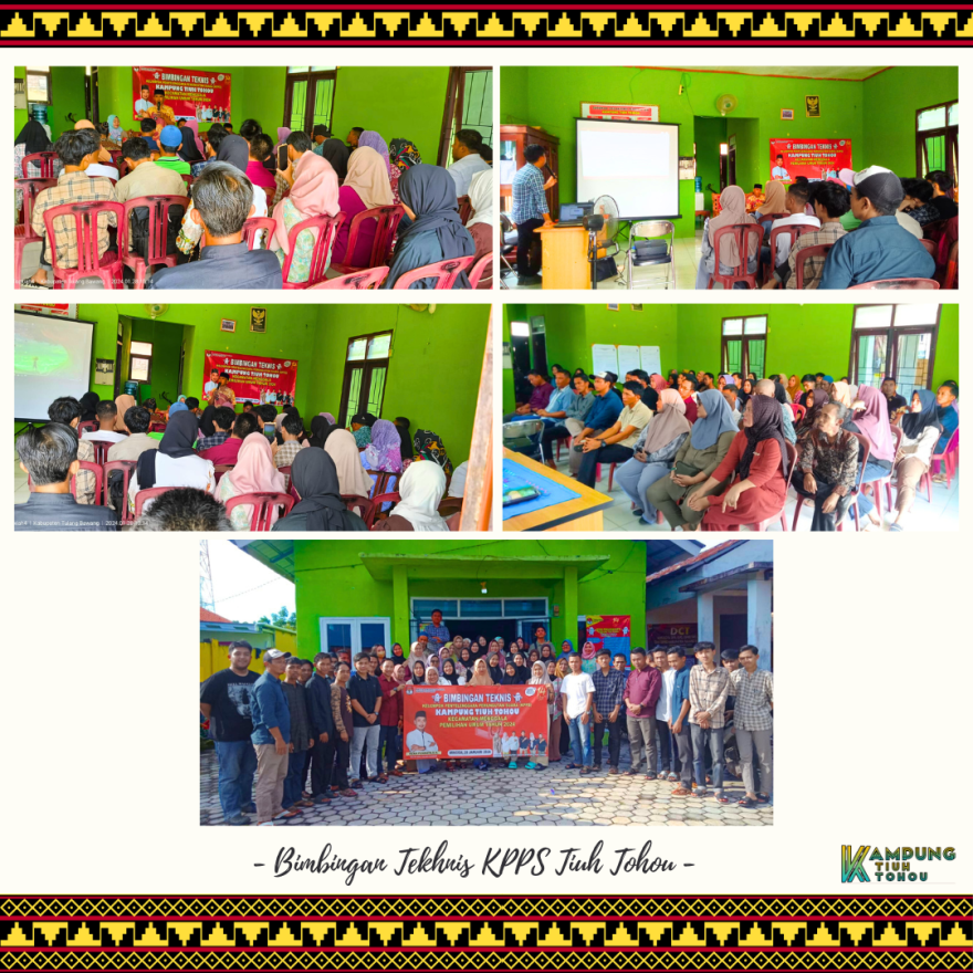 Kegiatan ini bertempat di Balai Kampung Tiuh Tohou dengan dihadiri oleh Kepala Kampung Tiuh Tohou beserta Aparatur Kampung dalam kegiatan tersebut Kepala Kampung Tiuh Tohou menyampaikan pesan terhadap para petugas disetiap TPS agar bisa melaksankan tugas dengan baik dan tertib sesuai peraturan yang telah ditentukan.