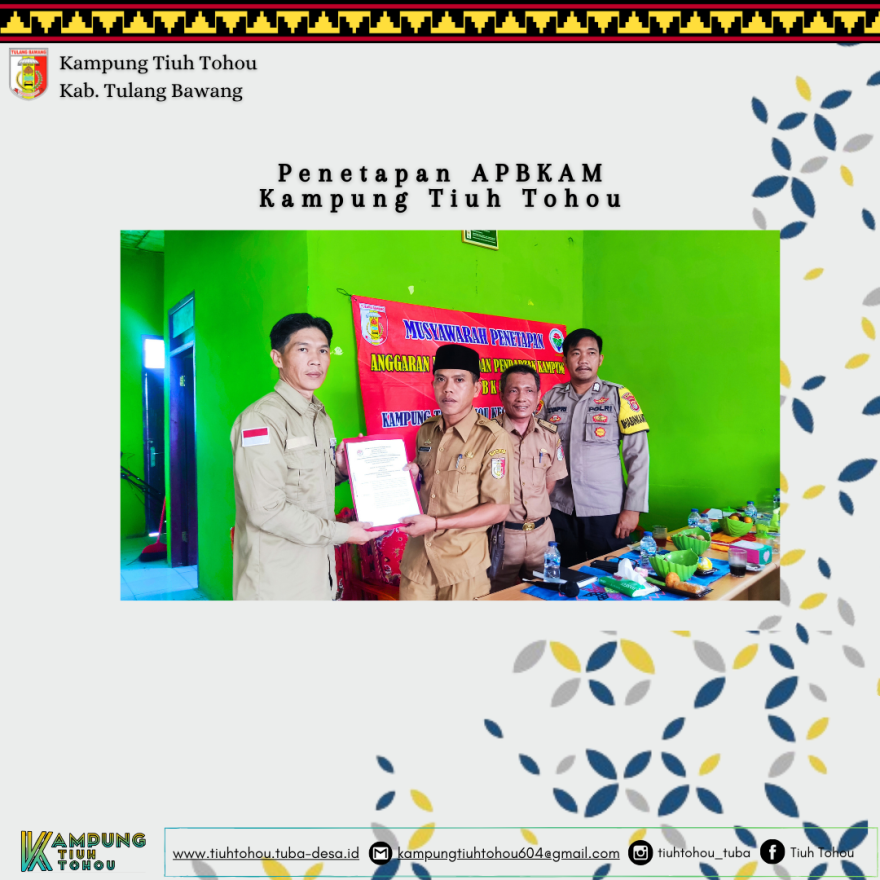Bertempat di Balai Desa Kampung Tiuh Tohou, Aparatur Kampung dan BPK Tiuh Tohou pada hari Selasa, 27 Februari 2024 pada Pukul 10.00 WIB s.d Selesai, telah dilaksanakannya Musyawarah Desa Tentang Penetapan APBKAM Tahun Anggaran 2024.