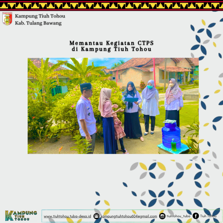 Dalam melakukan persiapan terhadap HUT Kab. Tulang Bawang Dinas Kesehatan melakukan pemantauan terhadap gerakan CTPS di Lingkup Kampung Tiuh Tohou ditemani oleh Bapak Kepala Kampung dan Kasi Pemerintahan