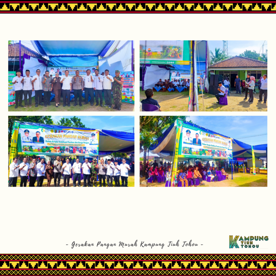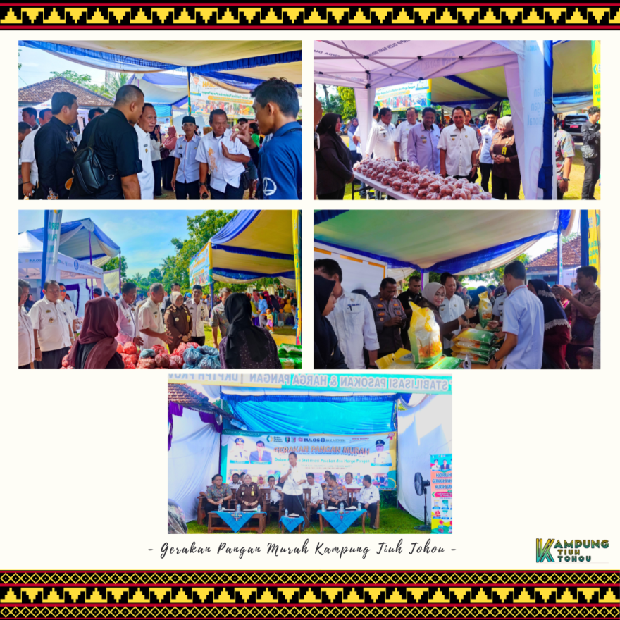 Dalam Rangka menstabilisasi Pasokan dan Harga Pangan, Pemerintah Kabupaten Tulang Bawang berkolaborasi Direktorat Stabilisasi Pasokan dan Harga Pangan melakukan Gerakan Pangan Murah yang di selenggarakan di Lingkup Kampung Tiuh Tohou dengan dihadiri oleh Bapak Pj. Bupati Drs. Qudratul Ikhwan, MM beserta Staf Ahli Bupati Pembangunan Ekonomi dan Keuangan.