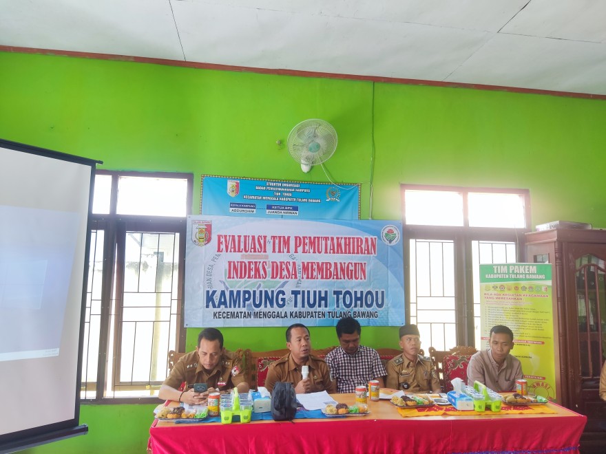 Acara ini dihadiri oleh Bapak Abdurohim selaku Kepala Kampung Tiuh Tohou, tim dari DPMPK Kabupaten Tulang Bawang, pendamping desa, serta seluruh aparatur Kampung Tiuh Tohou. Kehadiran Kepala Kampung memberikan motivasi kepada peserta untuk memahami pentingnya evaluasi dalam proses pembangunan desa.