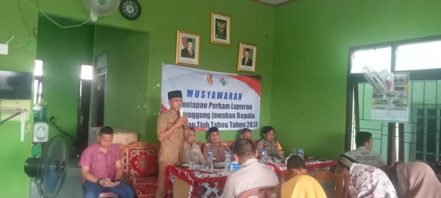 Tiuh Tohou, 6 Januari 2025 – Pada hari Senin, 06 Januari 2025, Kepala Kampung Tiuh Tohou, Bapak Abdurohim, bersama Kepala Camat Menggala, Bapak Sopiyanto, S.H., M.H, menghadiri kegiatan Musyawarah Penetapan Peraturan Kampung (Perkam) Laporan Pertanggungjawaban Kepala Kampung Tiuh Tohou Tahun 2024. Kegiatan ini dilaksanakan di Balai Desa Kampung Tiuh Tohou mulai pukul 09.30 WIB hingga selesai.