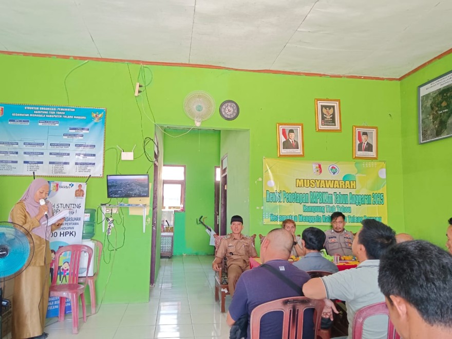 Tiuh Tohou, 24 Februari 2025 – Pada hari Senin, 24 Februari 2025, mulai pukul 13.00 WIB hingga selesai, Kepala Desa Tiuh Tohou, Bapak Abdurohim, turut hadir dalam kegiatan rapat musyawarah revisi penetapan Rencana Anggaran Pendapatan dan Belanja Kampung (RAPBKAM) Tahun 2025. Rapat ini dilaksanakan di Balai Desa Tiuh Tohou dan dihadiri oleh berbagai pihak, termasuk BPK, Bhabinkamtibmas, Pendamping Desa, Tokoh Adat, Tokoh Agama, Kepala Dusun (Kadus), Ketua RT, Bidan Desa, dan sejumlah aparatur desa lainnya. Kegiatan ini melibatkan Bapak Abdurohim, Kepala Desa Tiuh Tohou, serta perwakilan dari BPK, Bhabinkamtibmas, Pendamping Desa, Tokoh Adat, Tokoh Agama, Kepala Dusun (Kadus), RT, Bidan Desa, dan masyarakat yang terlibat langsung dalam pengelolaan anggaran desa. Rapat ini juga dihadiri oleh berbagai pihak yang memiliki peran penting dalam proses perencanaan dan pengelolaan anggaran di desa.