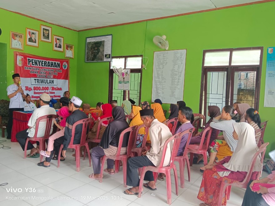 Kegiatan utama dalam acara ini adalah penyerahan BLT DD kepada masyarakat yang membutuhkan. Bantuan ini diberikan sebagai bentuk dukungan terhadap kesejahteraan masyarakat, serta untuk mengurangi dampak ekonomi yang dihadapi sebagian warga, terutama pasca pandemi dan masa-masa sulit lainnya. Bapak Kepala Kampung Abdurohim memberikan pengarahan terkait pentingnya pengelolaan anggaran yang cepat dan efisien sesuai dengan peraturan yang berlaku. Kegiatan penyerahan BLT DD ini sangat penting karena merupakan salah satu langkah konkrit dalam memberikan bantuan kepada masyarakat yang membutuhkan. Bapak Kepala Kampung Abdurohim juga memberikan apresiasi kepada aparat desa yang telah bekerja keras dalam menyukseskan acara ini, yang menjadi kegiatan pertama di tahun 2025 untuk Kecamatan Menggala. Dalam kesempatan ini, beliau juga menekankan pentingnya efisiensi dalam penganggaran dan pengelolaan dana desa, agar bantuan yang disalurkan tepat sasaran.